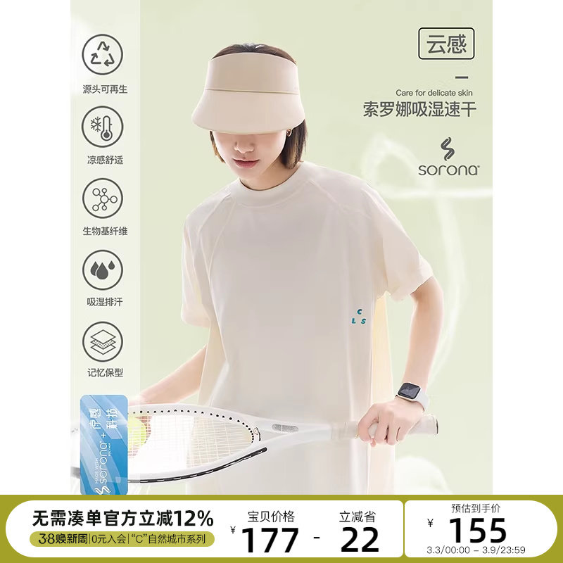 云上生活【慢享T】索罗娜凉感宽松显瘦插肩袖T恤女夏季短袖上衣