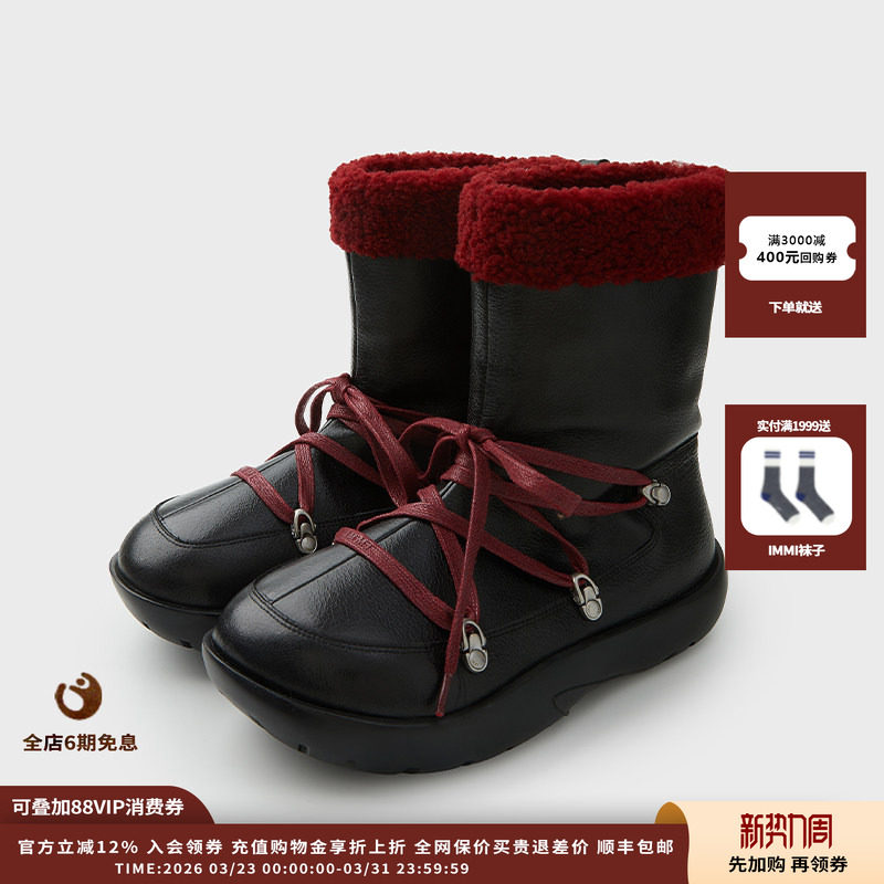 【现货】设计师品牌IMMI 25AW女式荔枝纹圆头中筒靴MWEFWXBO0468A