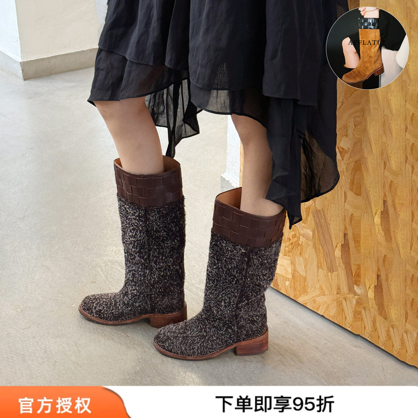 金靖同款Afflatus3 26新款牛反绒靴子手工编织圆头中筒靴短靴鞋子