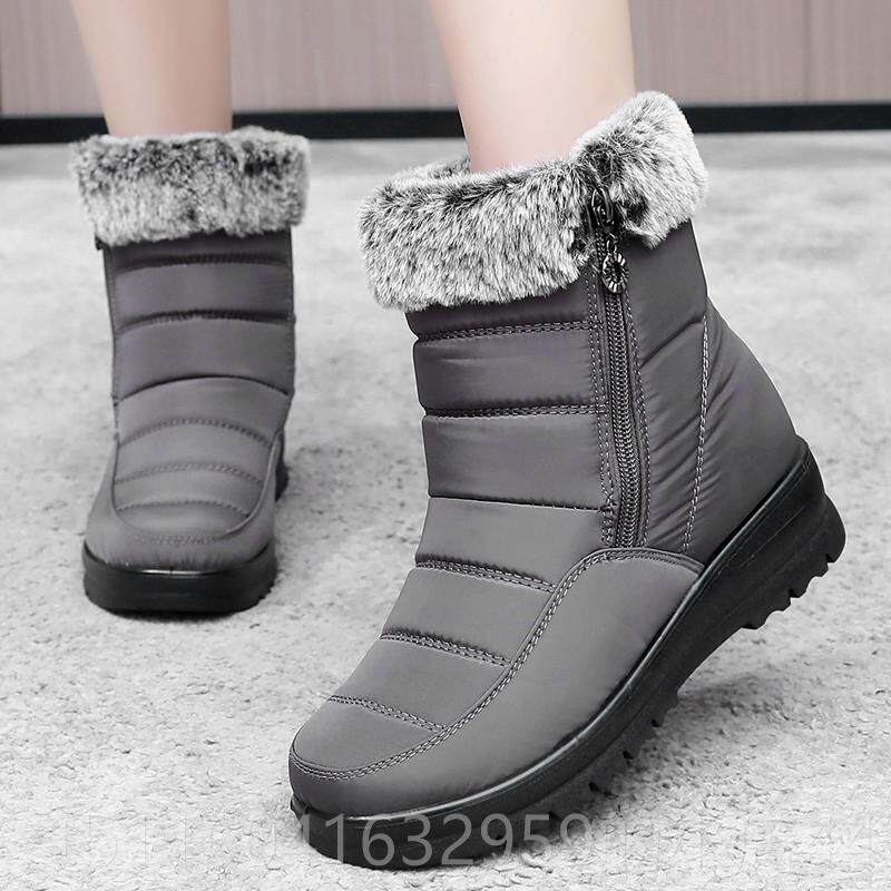 新款冬季休平跟中年闲加绒防寒保加厚棉鞋圆头中筒靴暖雪地妈妈靴
