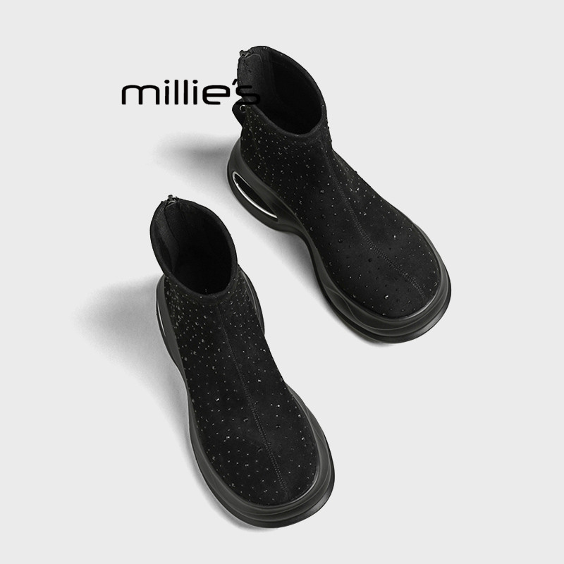 MILLIE'S/妙丽圆头中筒靴2026秋款潮流厚底运动靴酷飒袜靴弹力靴Z