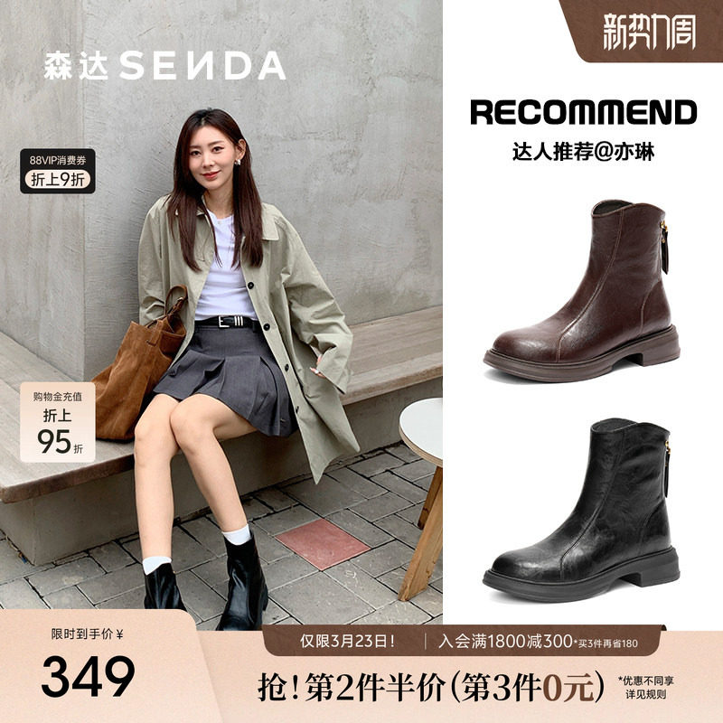 MILLIE'S/妙丽复古短靴女秋冬新款堆堆靴圆头中筒靴西部靴马丁靴