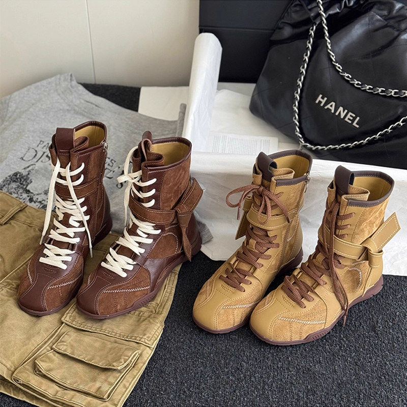 复古德训马丁靴女2026秋季新款休闲运动短靴拳击靴圆头中筒西部靴
