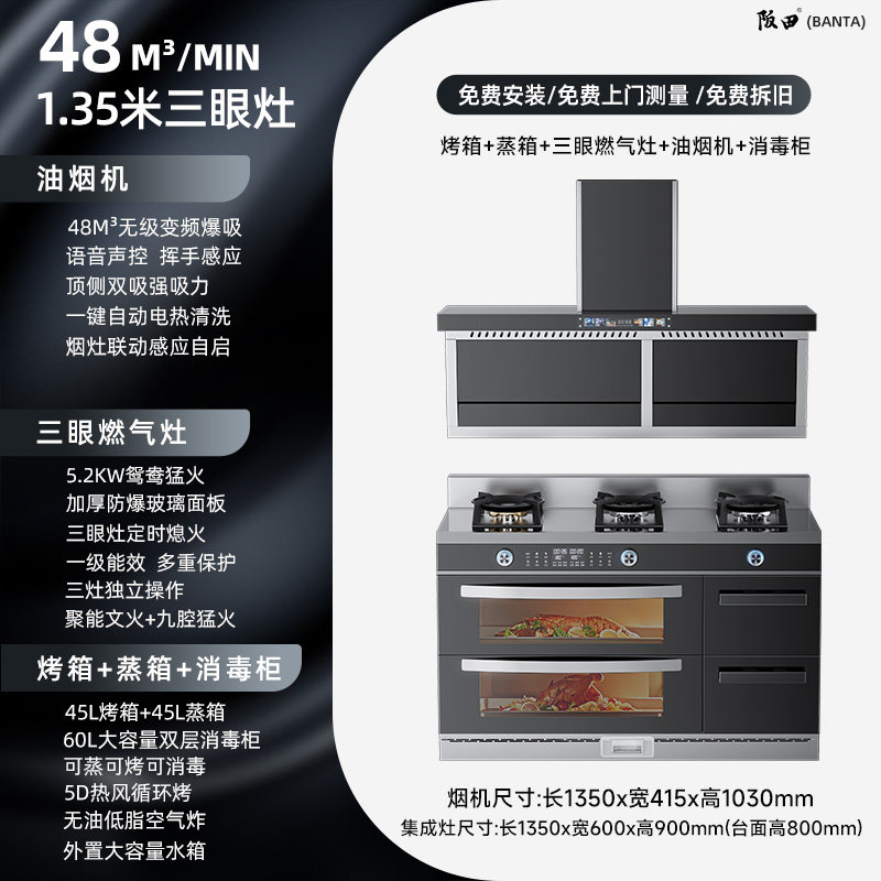 阪田(日本)分体集成灶家用大尺寸蒸烤消毒柜独立水槽自动清洗储物
