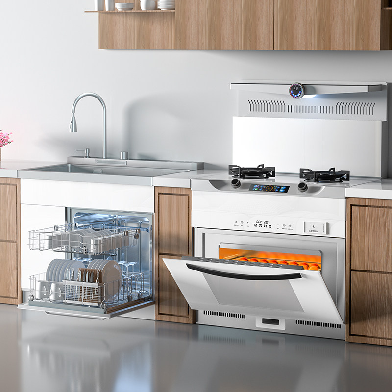 集成灶自动清洗油烟烤离烟机YGS具消毒灶柜蒸箱一连体套分装下排