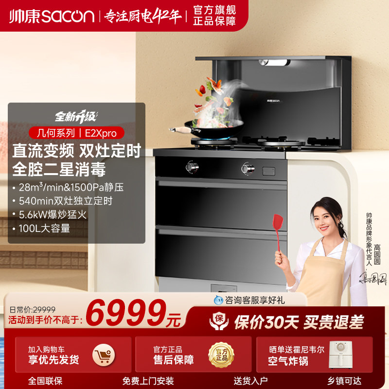帅康E2XPRO集成灶家用烟灶消毒柜一体灶智能自动清洗大火力官方