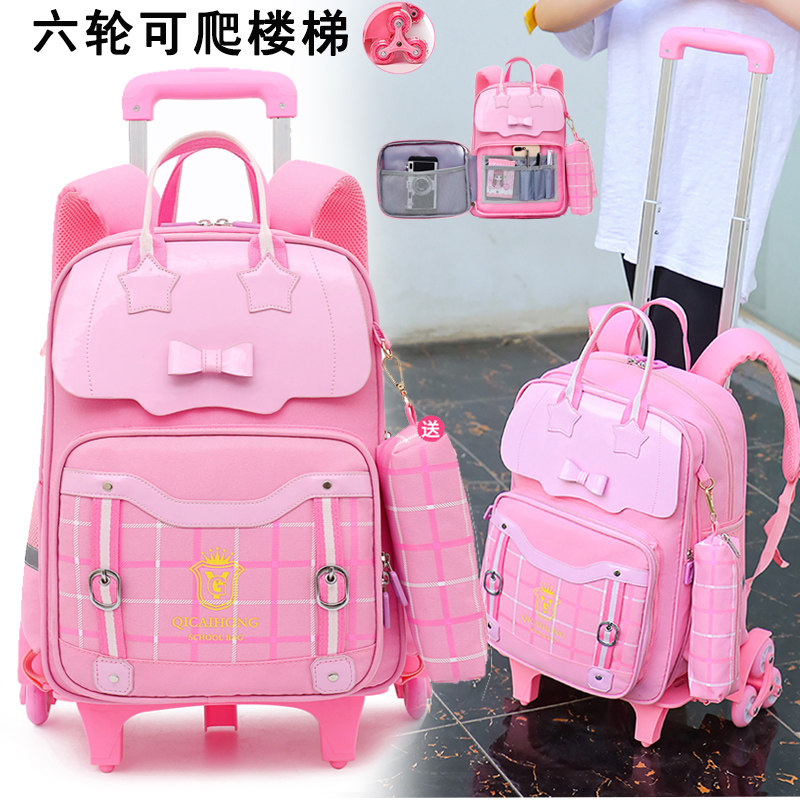 小学生书包儿童拉杆书包3-4-6年级女孩拖拉包6-12周岁六轮爬楼梯