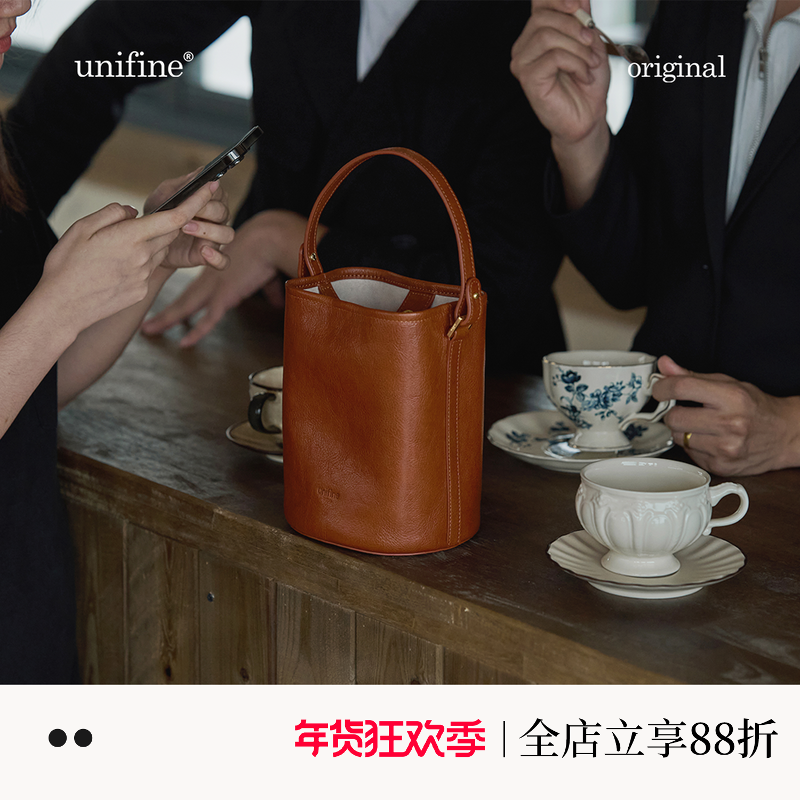 unifine水桶包女新款植鞣牛皮单肩包真皮斜挎包高级感手提通勤包