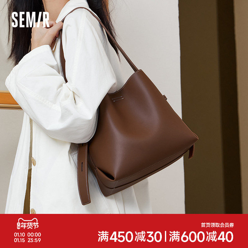 森马水桶包女高级单肩包手提菜篮子包通勤背包时尚大容量斜挎包女