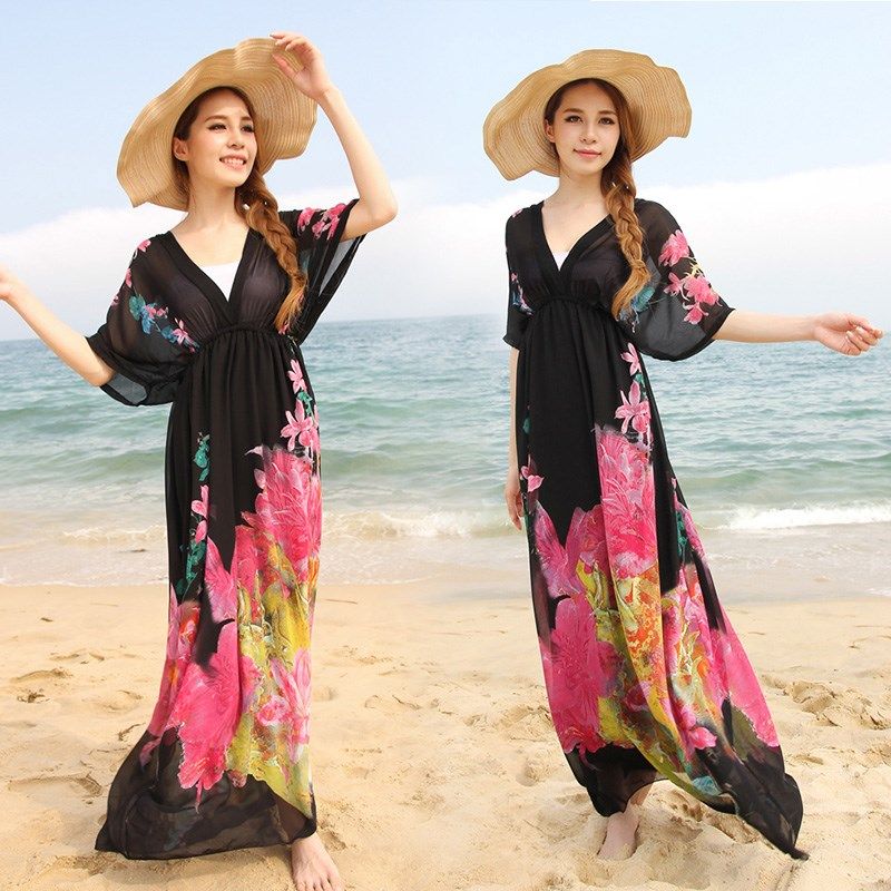 夏新款大码波西米亚沙滩裙女神印花雪纺长裙连衣裙气质飘逸仙女裙