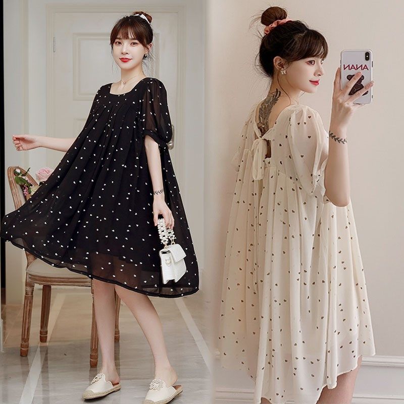 孕妇夏装200斤加肥大码雪纺连衣裙雪纺薄款小清新碎花裙孕妇上衣