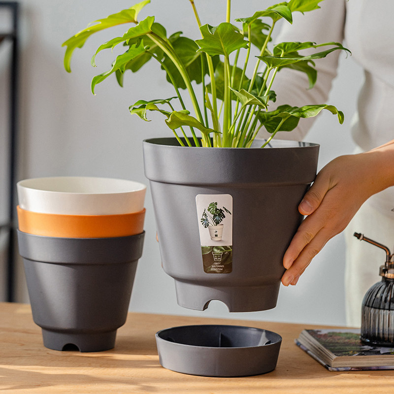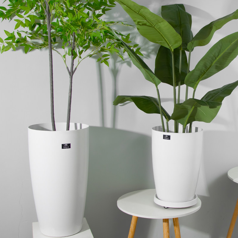 北欧轻奢加厚塑料花盆特大号家用简约树脂带托盘阳台客厅控根透气