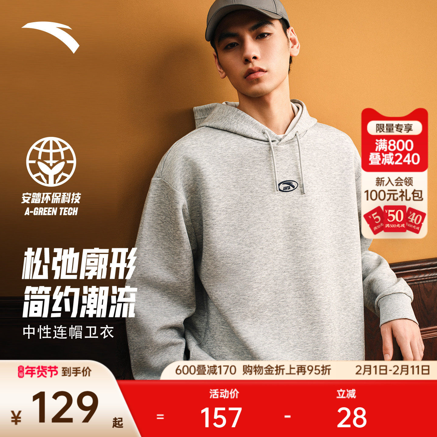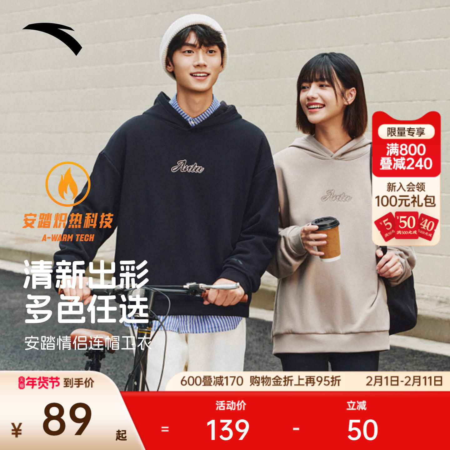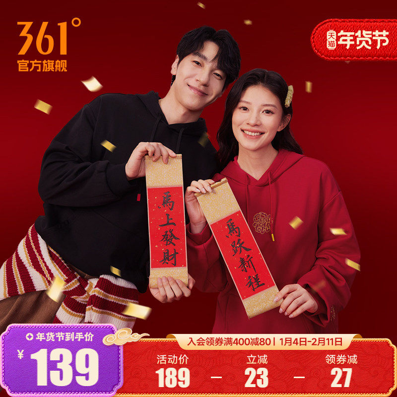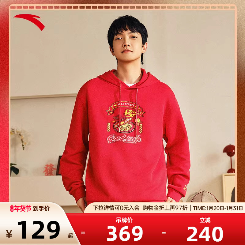 安踏好事发生丨新年款红色连帽卫衣男女休闲套头衫上衣马年本命年