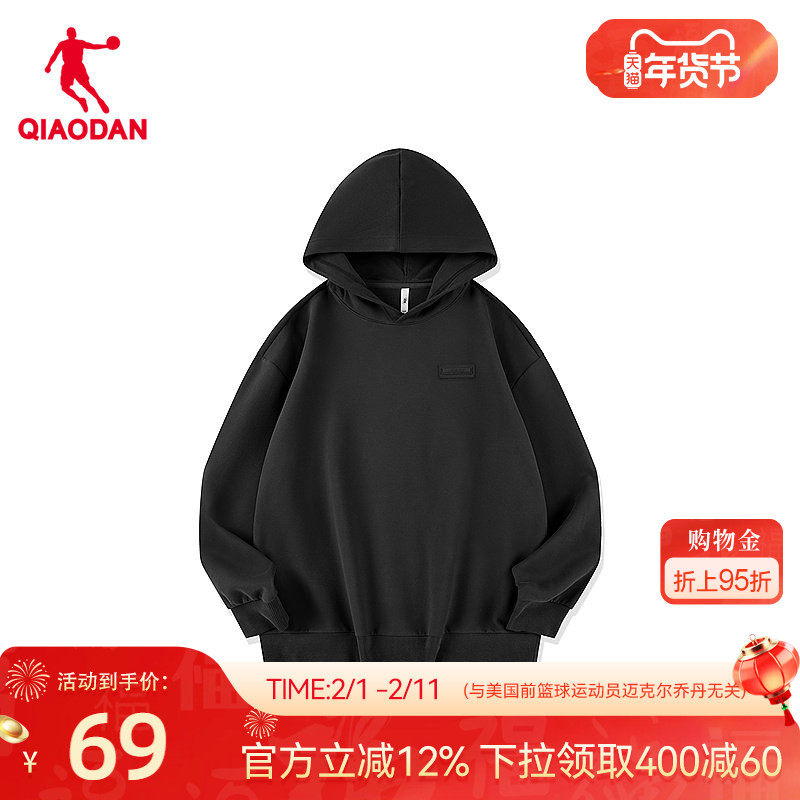 中国乔丹运动卫衣男2026春季新款连帽套头针织上衣保暖男士休闲