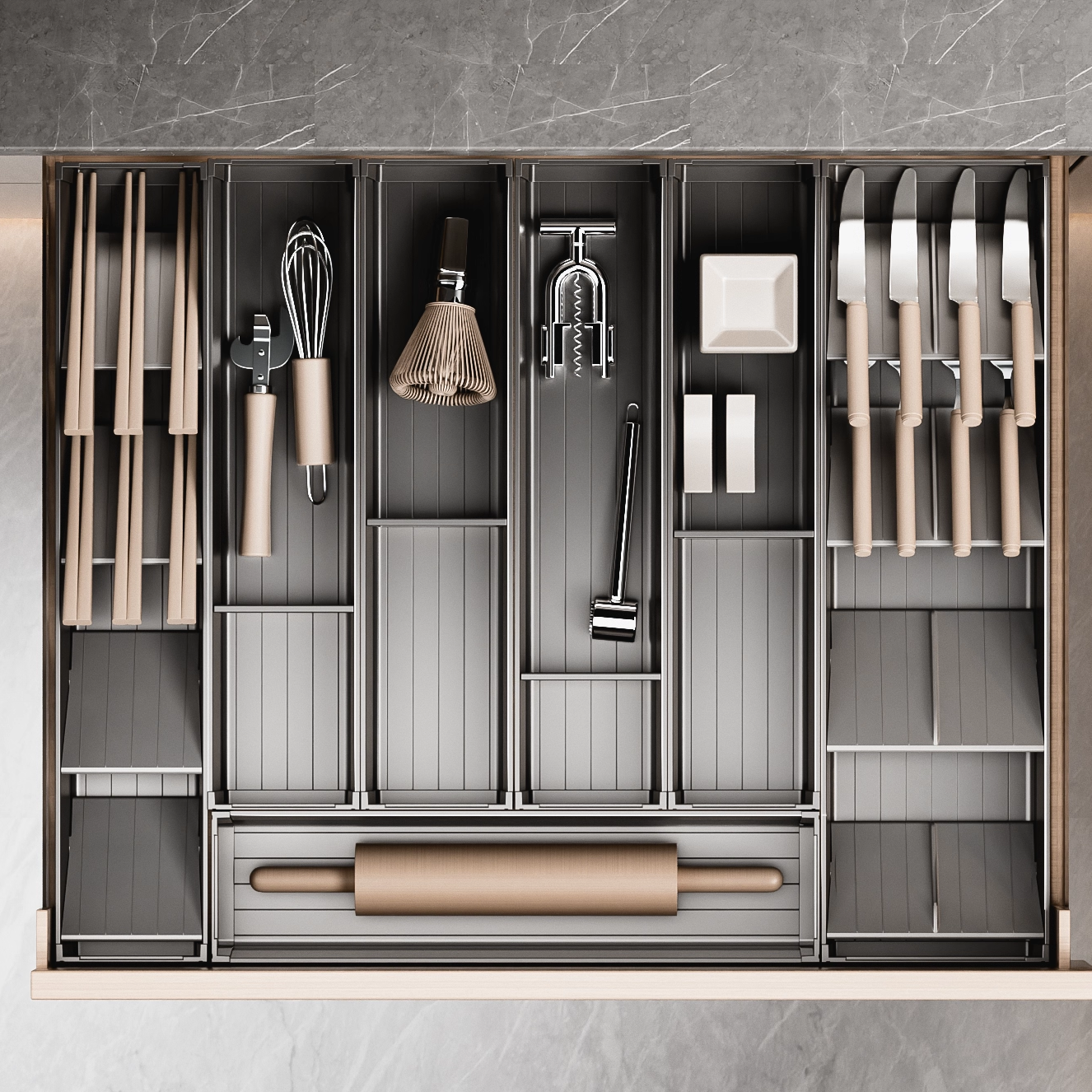 定制橱柜内抽屉里收纳分隔装放筷子勺子的收纳盒厨房铲子收纳神器