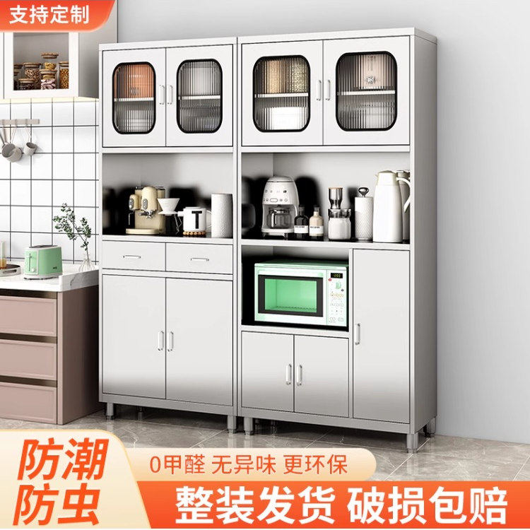 304不锈钢餐边柜碗柜橱柜厨房菜柜带抽屉储物柜微波炉放置柜定制
