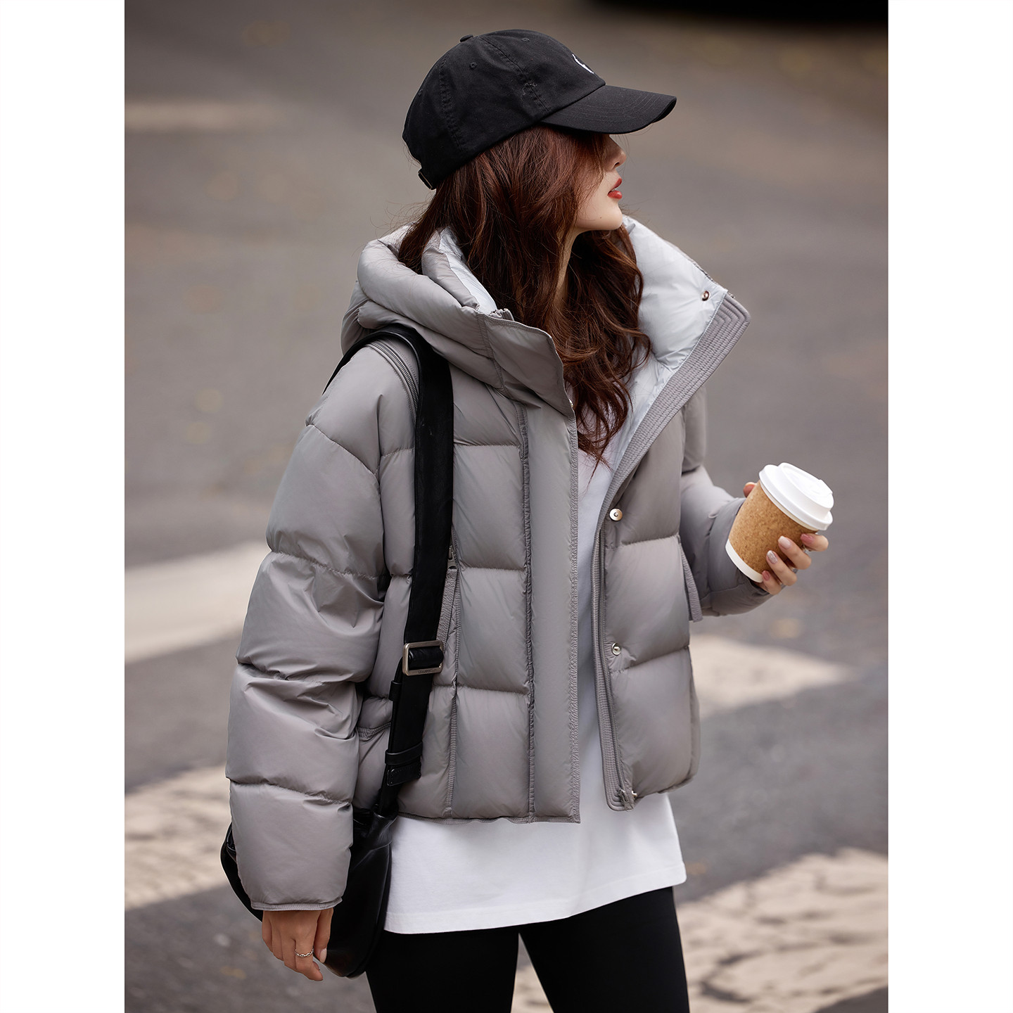 苏醒的乐园短款百搭休闲纯色连帽羽绒服2025新款女加厚冬季羽绒服