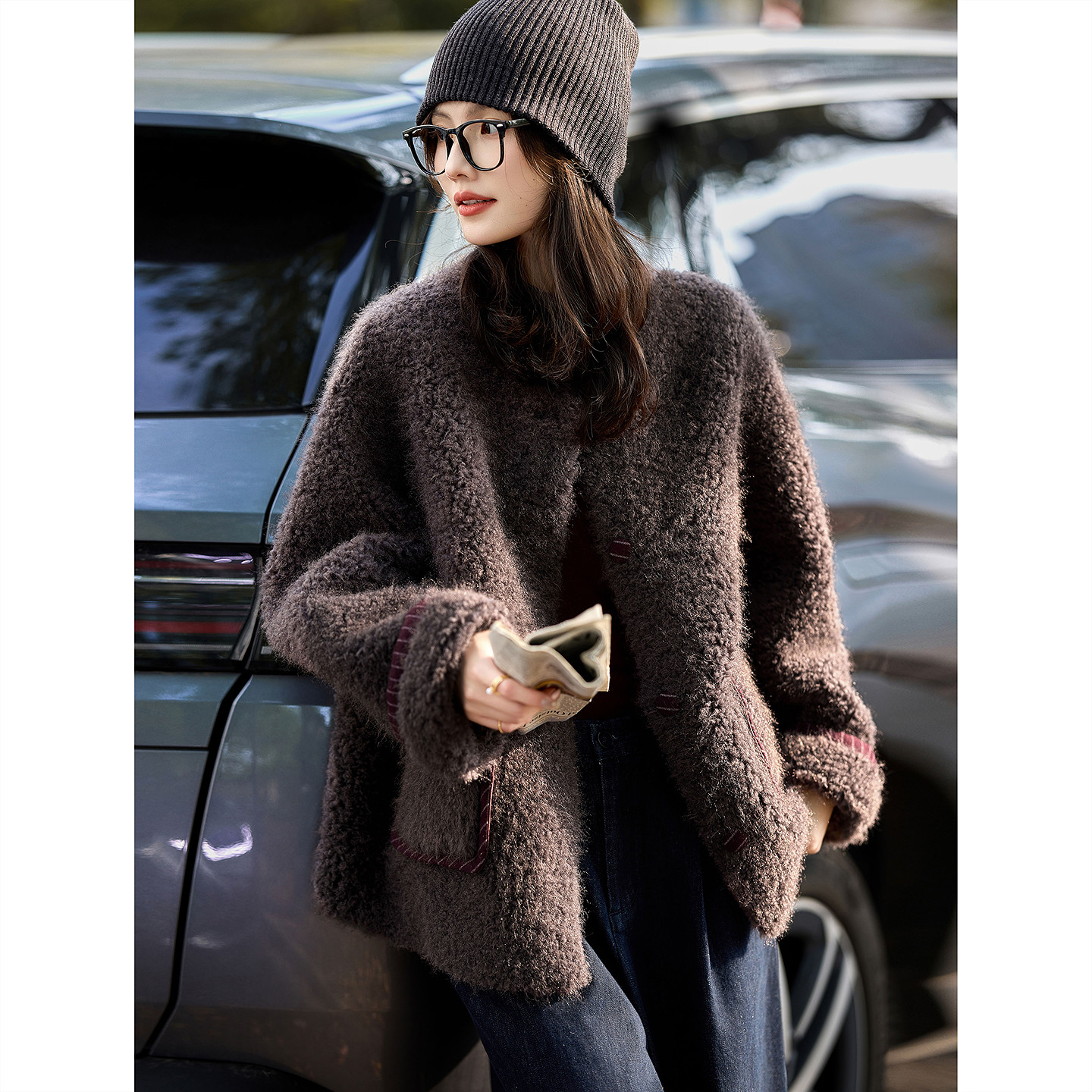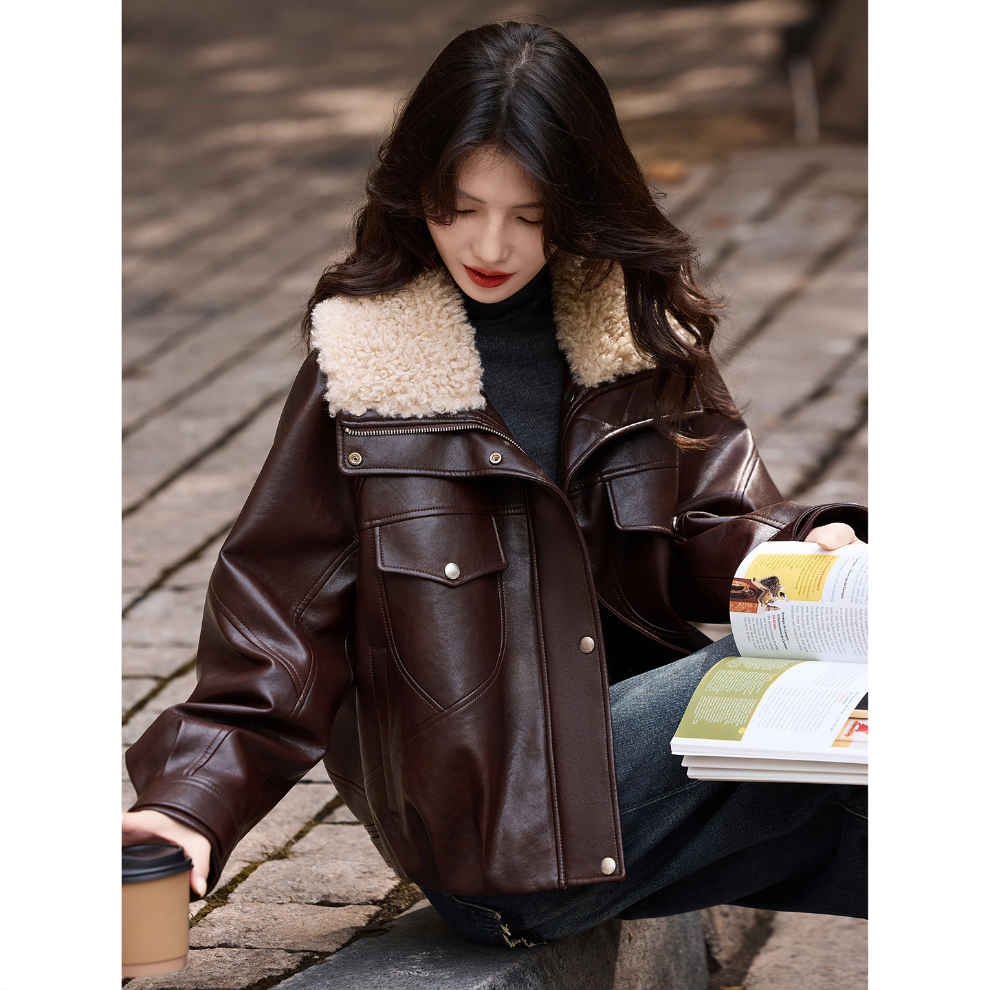 苏醒的乐园翻领仿皮草皮毛一体外套2025年冬季新款加绒厚外衣女