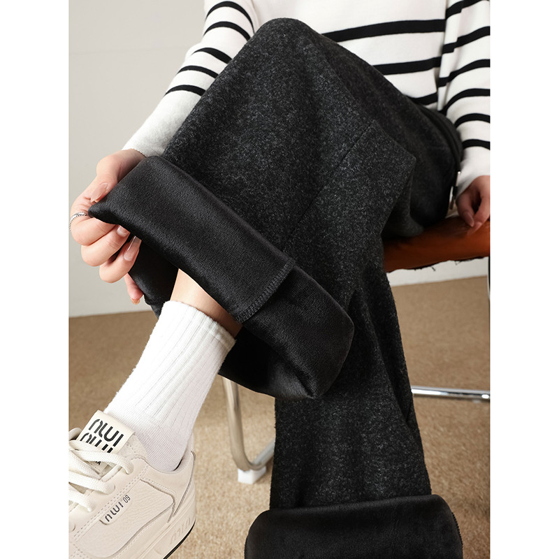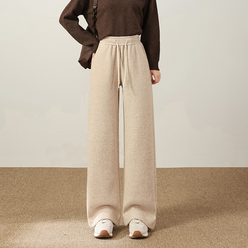 苏醒的乐园慵懒风加绒抽绳阔腿长裤2025年冬季新款松紧腰休闲裤