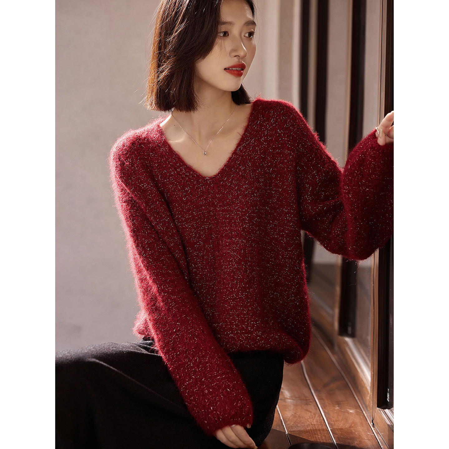 苏醒的乐园温柔淑女V领纯色套头毛衣2025年冬季新款针织女装上衣