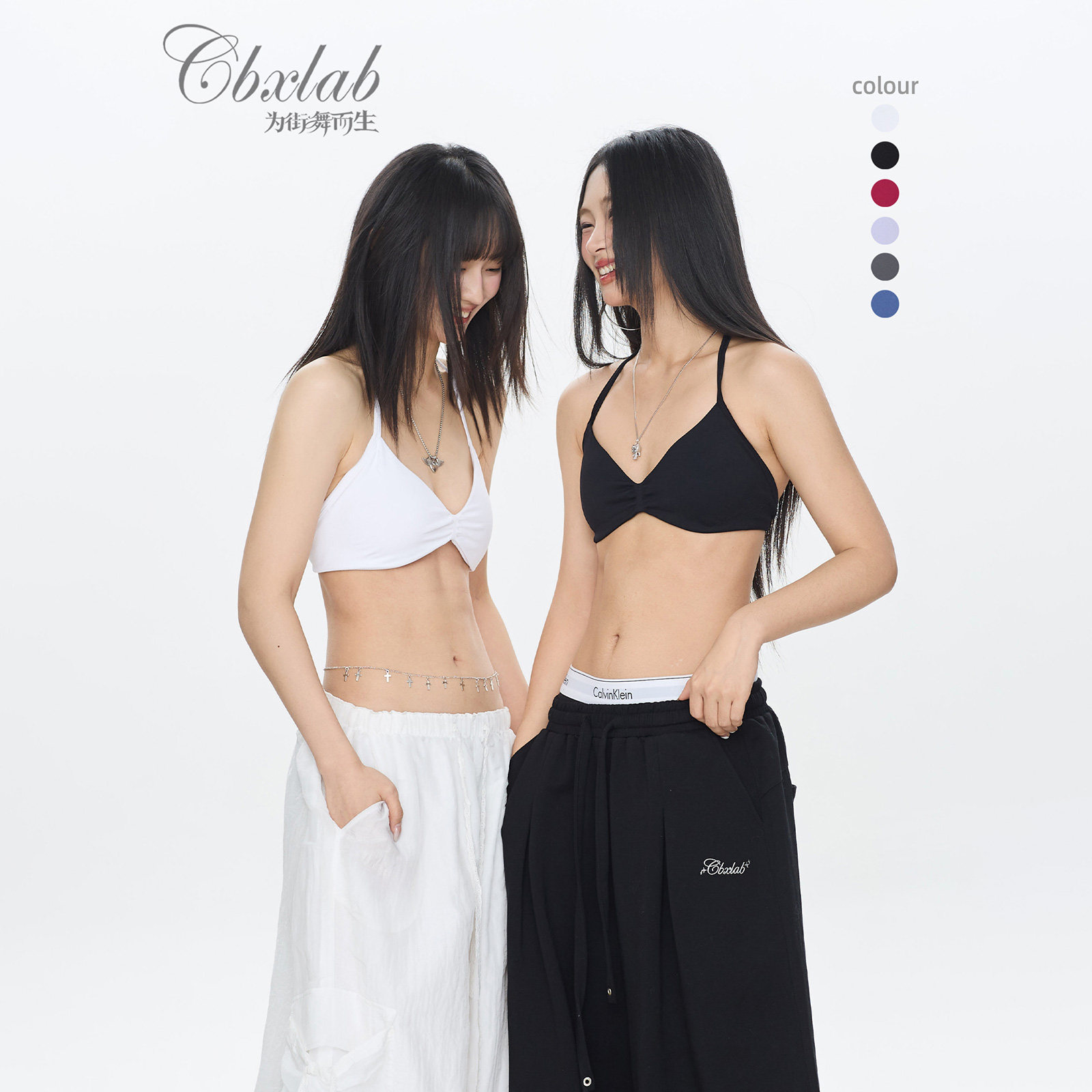 CBXLAB街舞潮牌超细挂脖运动内衣抽褶显瘦性感欧美爵士跳舞背心女