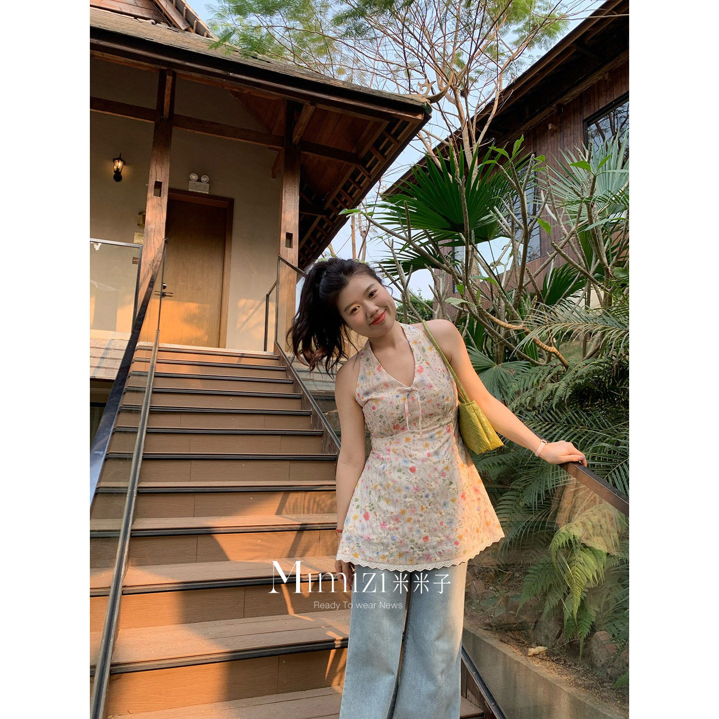 3MER哦哦三妹 法式露背气质波点挂脖吊带背心春夏显瘦无袖上衣女