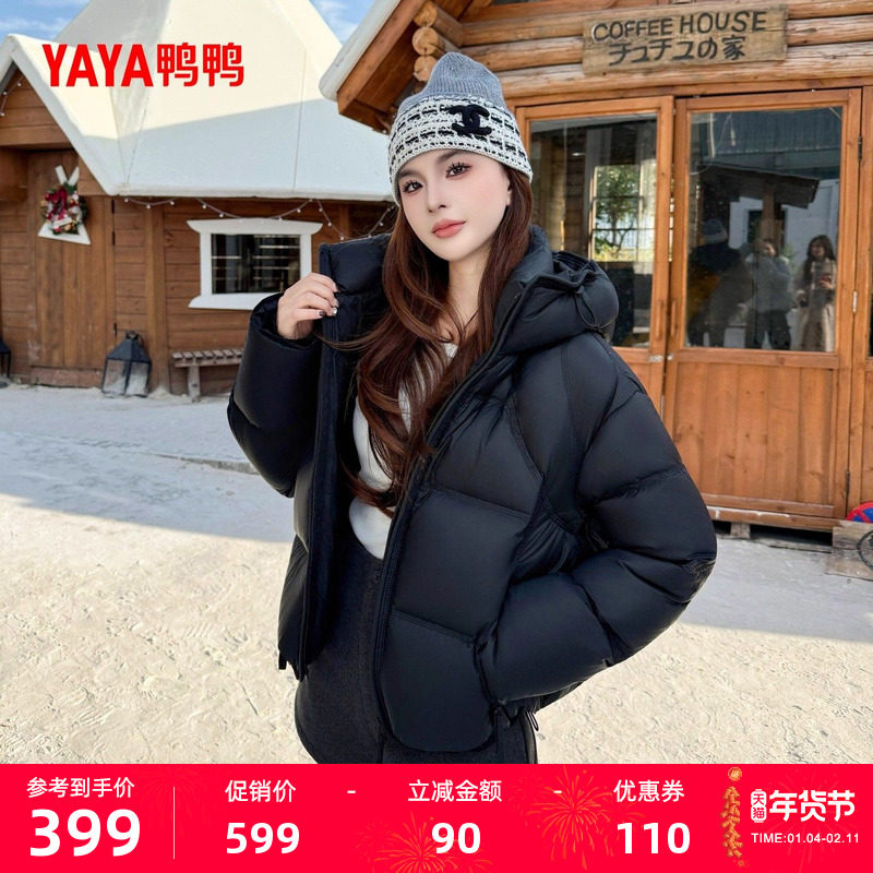 鸭鸭羽绒服女款2025年秋冬季新品连帽短款宽松舒适保暖鸭绒外套F