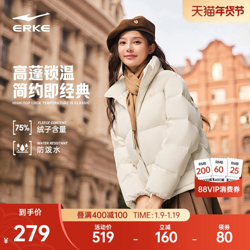 鸿星尔克羽绒服女冬季新款女士三防好看短款面包棉服棉袄外套女款