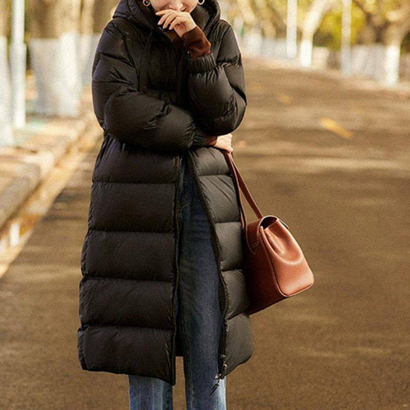 加厚保暖90白鹅绒长款羽绒服 女款高端女装平湖冬装 过膝连帽外套