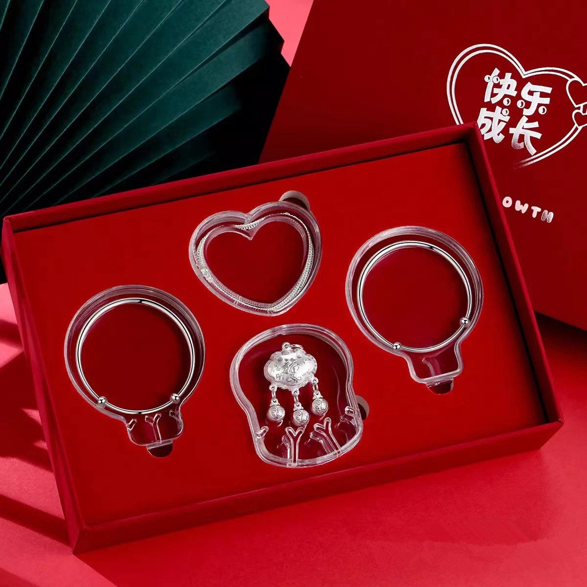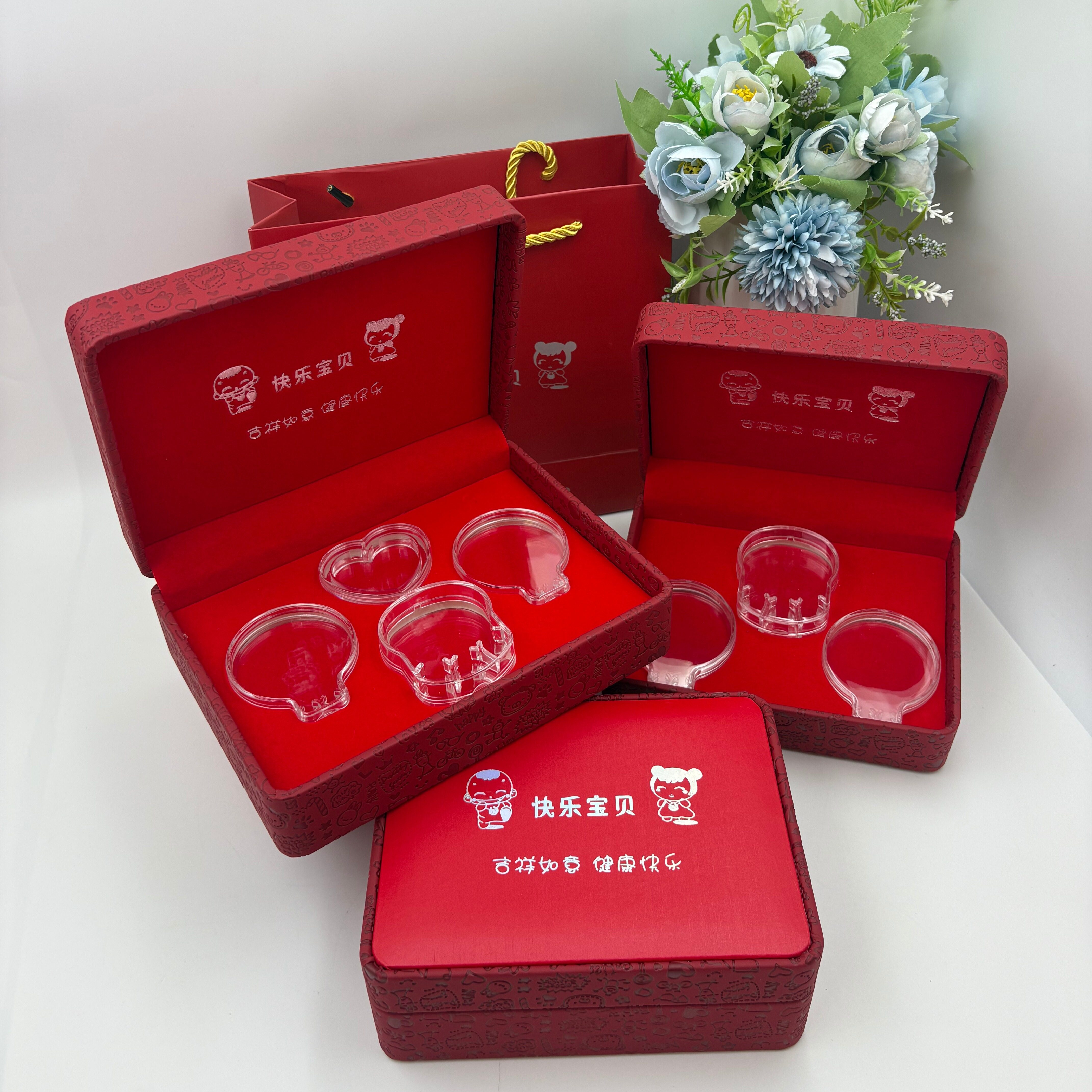 宝宝银饰套装盒儿童手镯长命锁礼品盒出生满月送礼包装黄金首饰盒