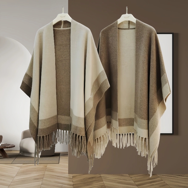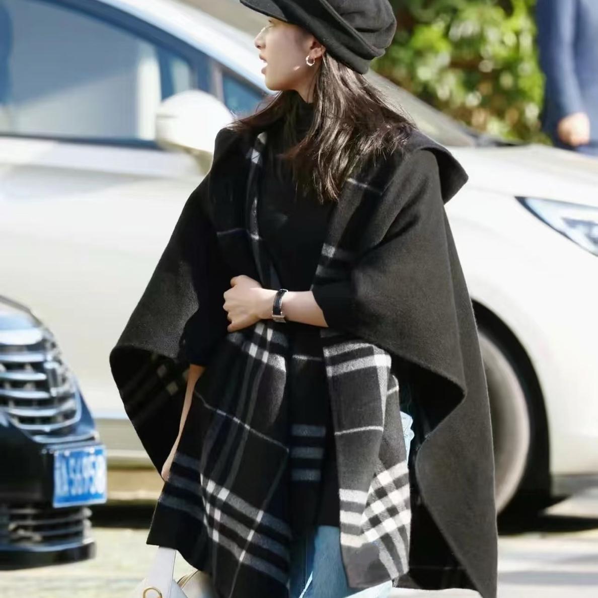 b家羊绒披风纯山羊绒大披肩围巾两用重磅双面羊绒披毯羊绒衫披肩