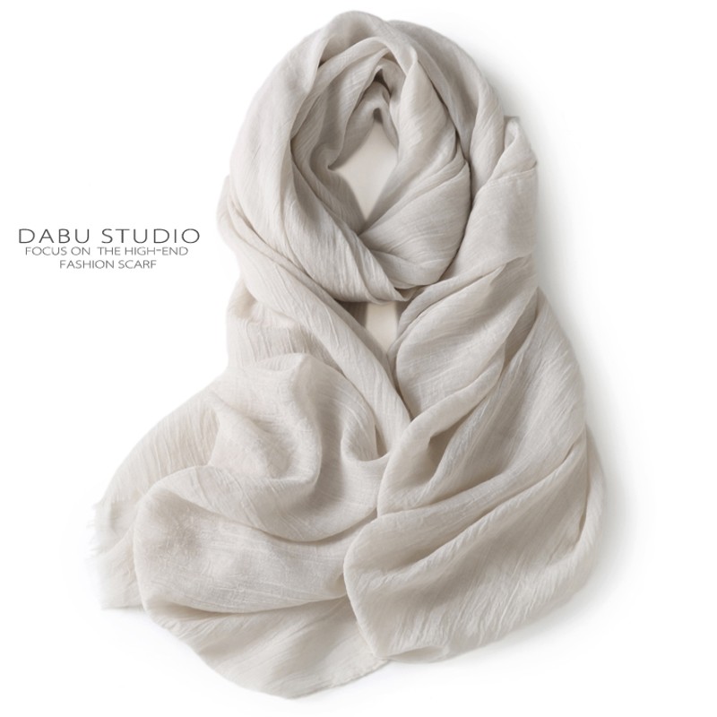 不输羊绒b质感纯棉麻文艺围巾纯色米白卡其浅灰色围巾披肩男女四