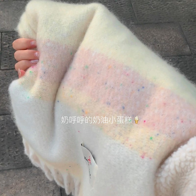 芝士奶黄羊绒围巾女冬2025新款B韩系氛围毛绒披肩保暖显白学生围