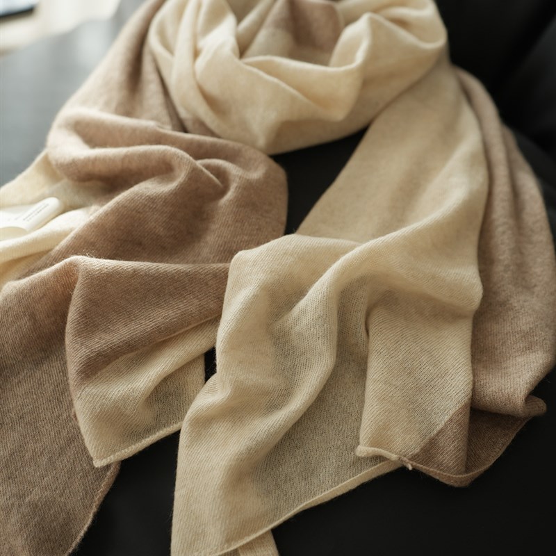 100%纯山羊绒围巾女秋冬季针织B大披肩两用薄款三色拼接保暖围脖