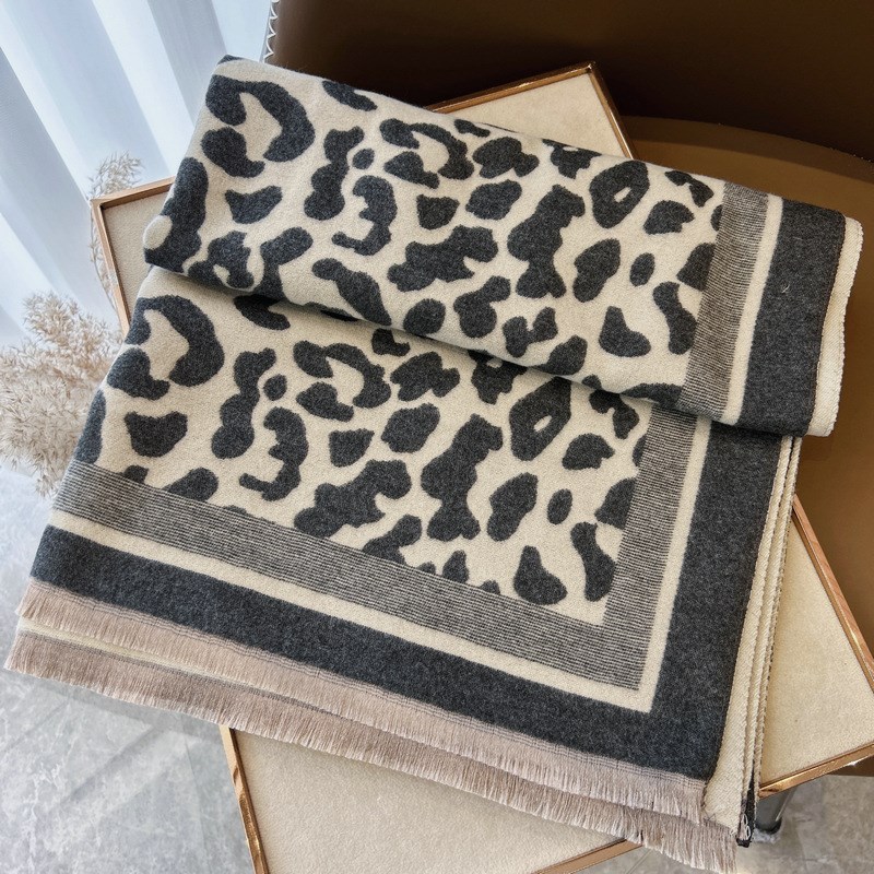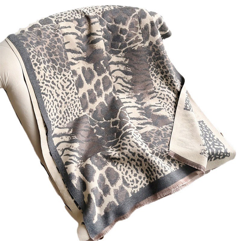 豹纹围巾女韩版冬季新款高级感B百搭复古仿羊绒披肩保暖围脖两用
