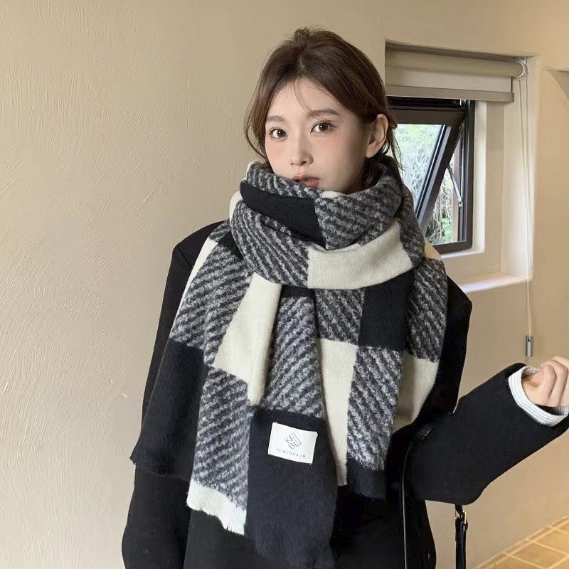 新款彩色格子围巾女高级感仿羊绒B韩版百搭加厚保暖秋冬长披肩围