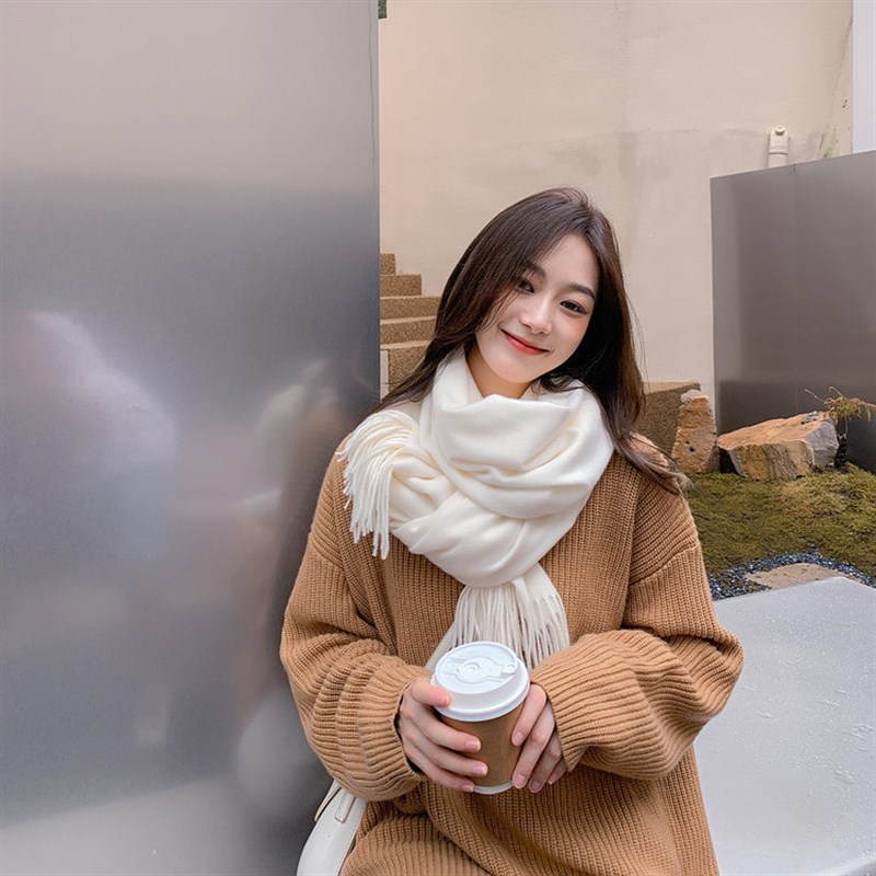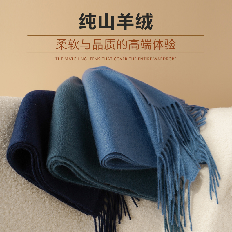 简约纯色仿羊绒围巾男女冬季加厚B保暖双面双色百搭流苏披肩包芯