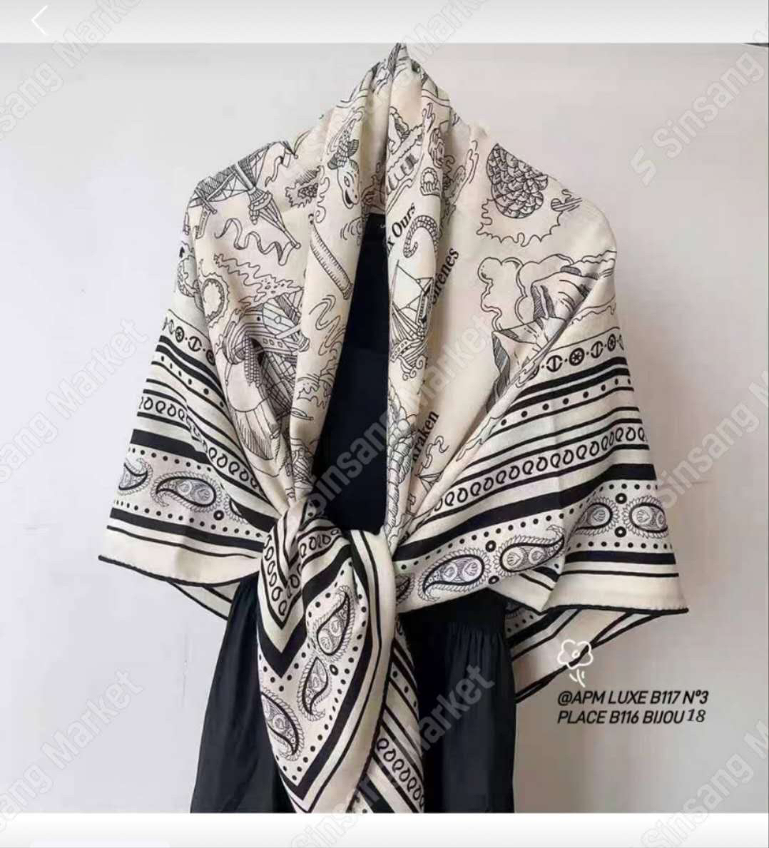 韩国东大门代购薄款b117百搭经典130*130cm方巾百搭披肩真丝羊绒