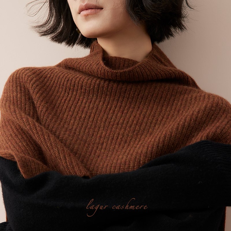 加厚版山羊绒100%--针织高领假B领子披肩套头斗篷开叉护肩围脖保