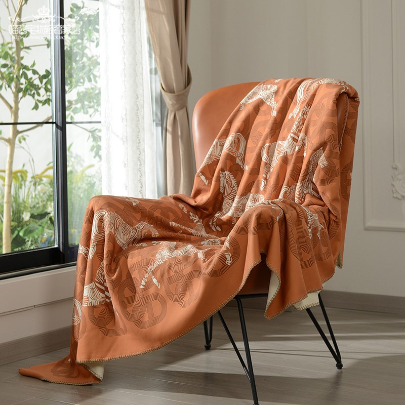 A类美式b轻奢亲肤棉羊绒H猪鼻纹沙发毛毯盖毯空调毯子办公室披肩