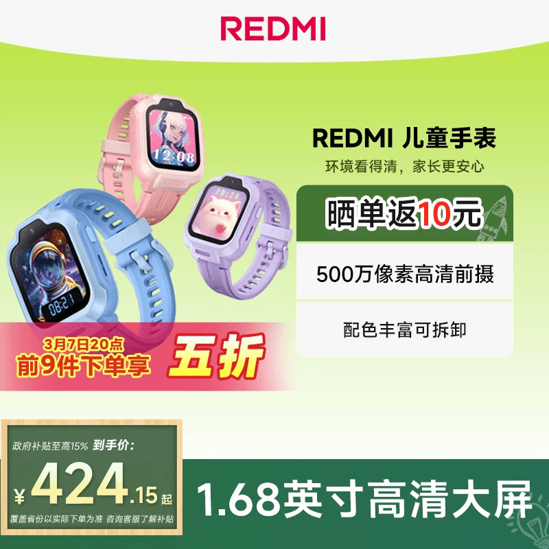 【国家补贴15%】小米REDMI儿童电话手表高清摄像 安全定位 防水表带可拆卸小学生少年男女孩官方正品礼物
