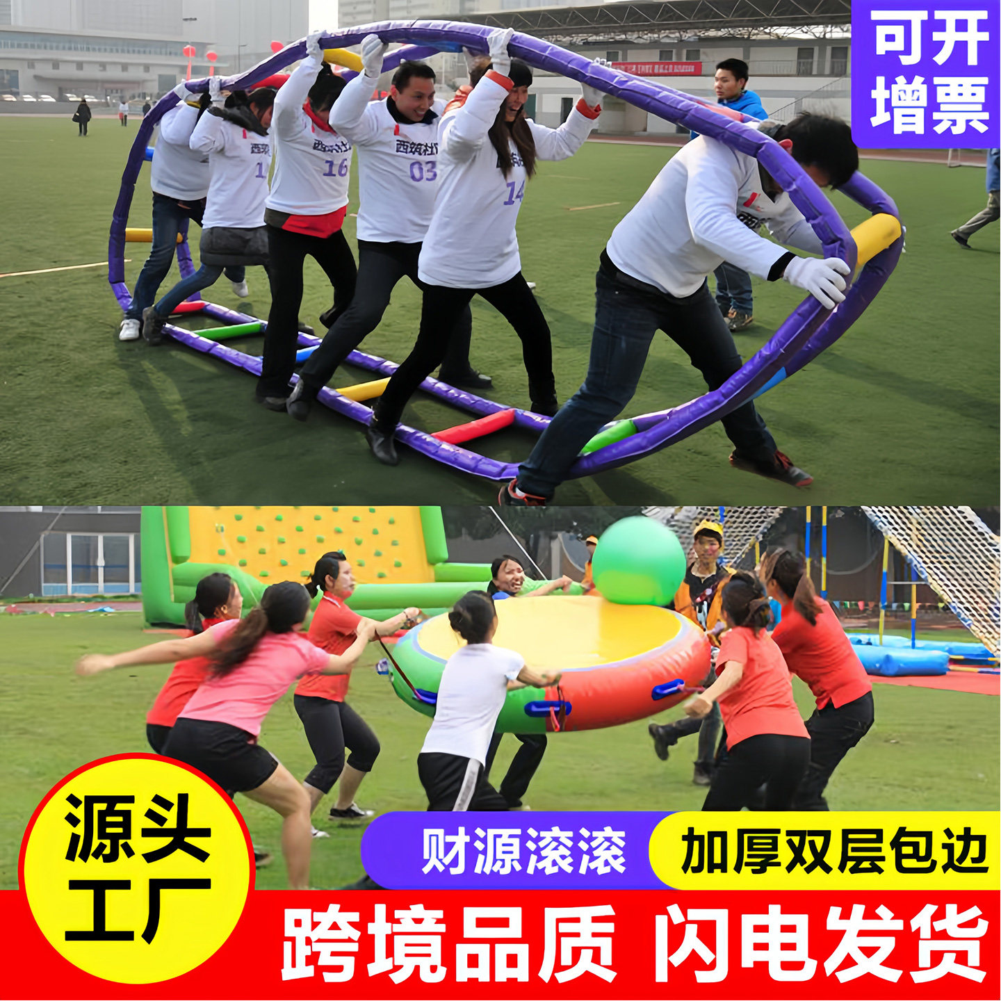 趣味运动会道具充气运转乾坤球户外大彩球儿童毛毛虫竞速车轮滚滚