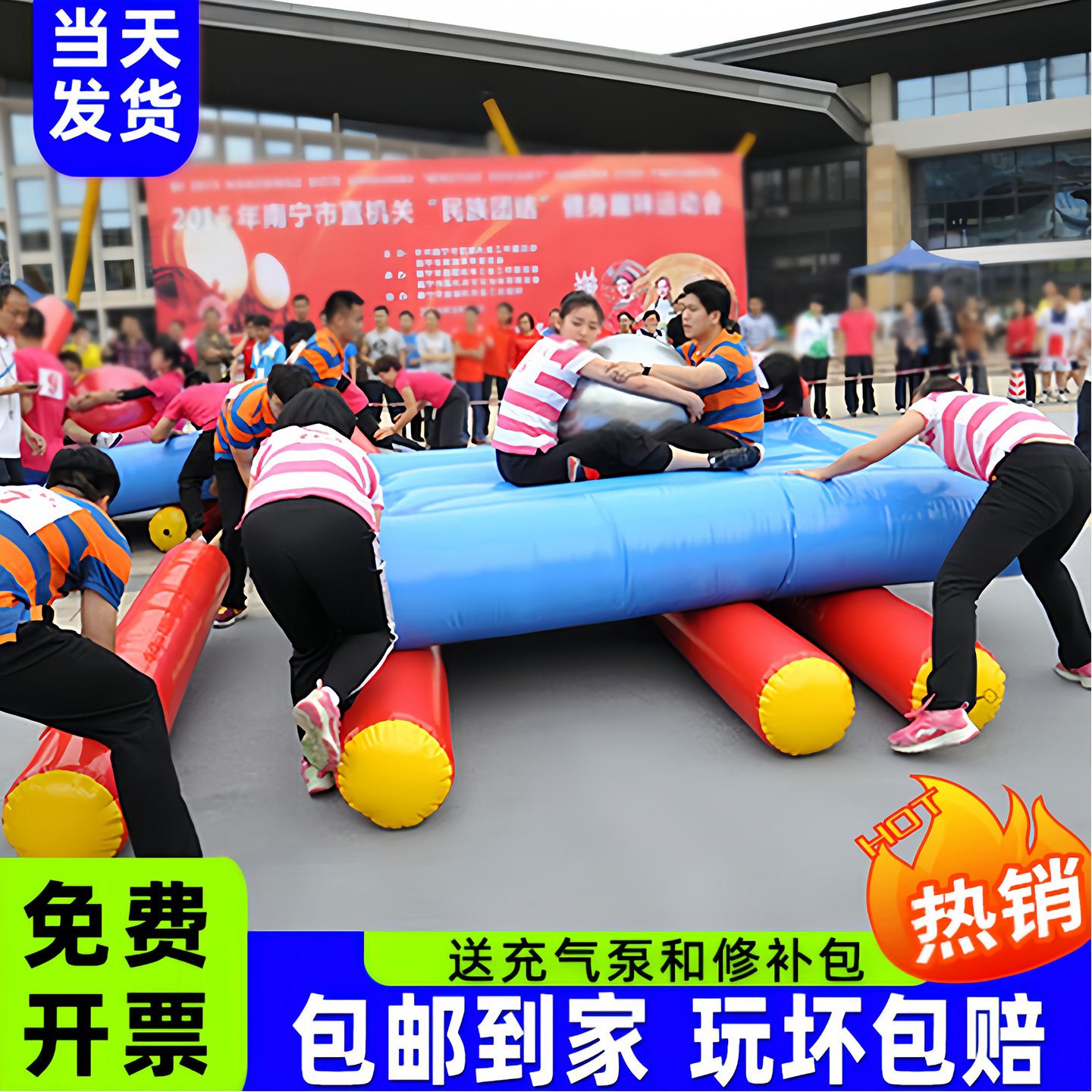 趣味运动会道具充气汉诺塔坦克大战车轮滚滚团队建设活动器材拓展