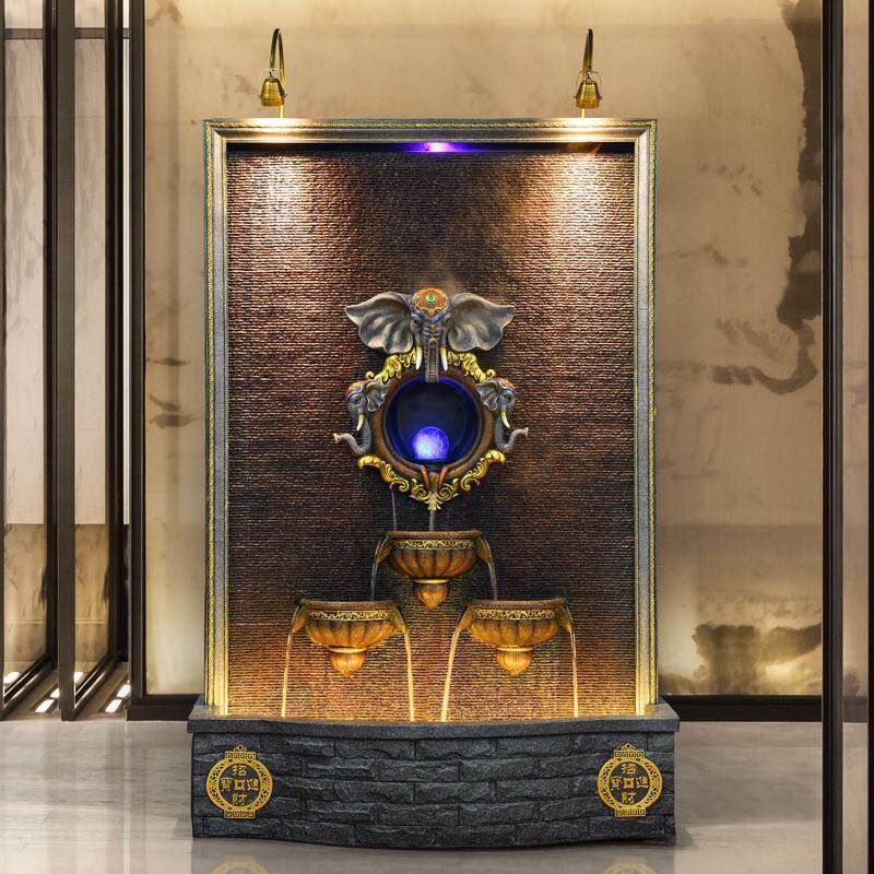 轻奢流水摆件循环水幕墙落地客厅电视柜旁招财风水轮开业乔迁礼物