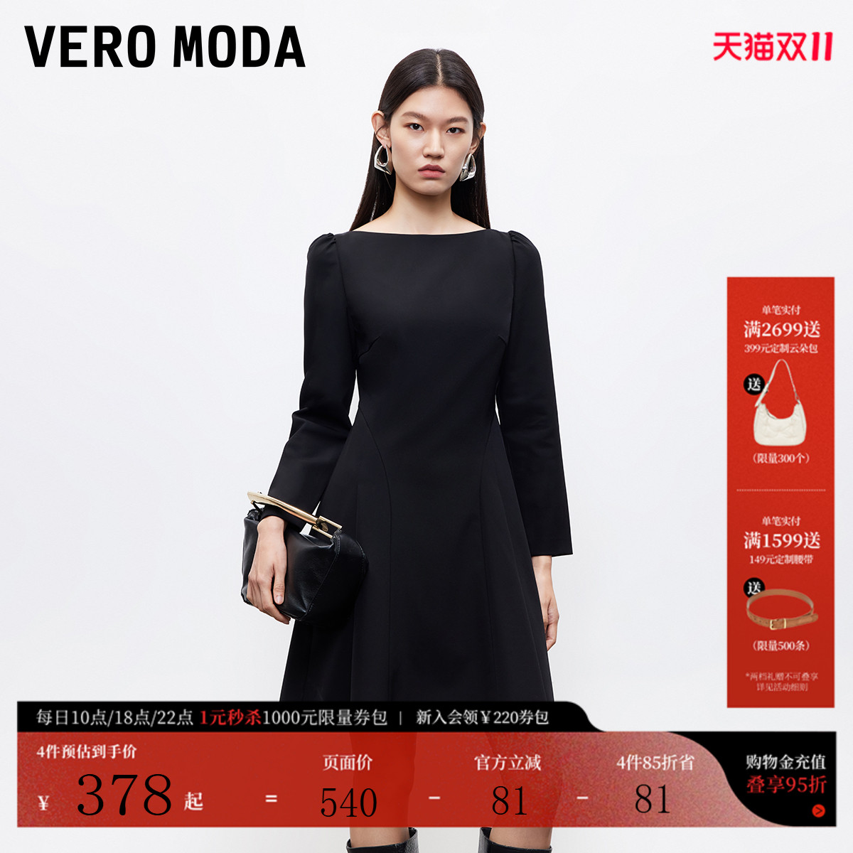 Vero Moda连衣裙2025秋季新款一字圆领简约A字收腰短裙大气优雅