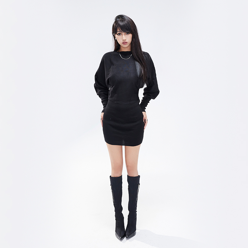 kilonova收腰连衣裙女复古性感辣妹一字领蝙蝠袖秋冬内搭打底短裙