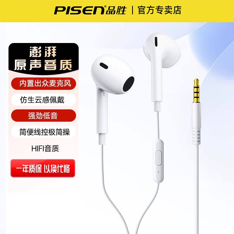 品胜有线耳机3.5mm圆孔半入耳式Hifi高音质线控电脑台式笔记本用