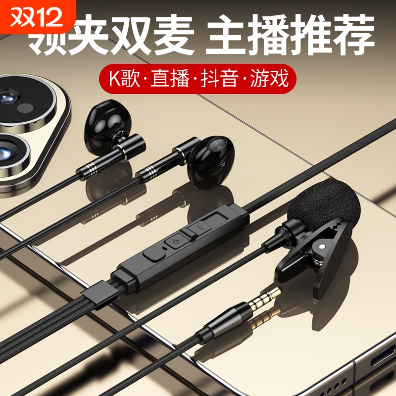 台式电脑耳机直播K歌录音带领夹麦克风有线HIFI入耳式电竞游戏用