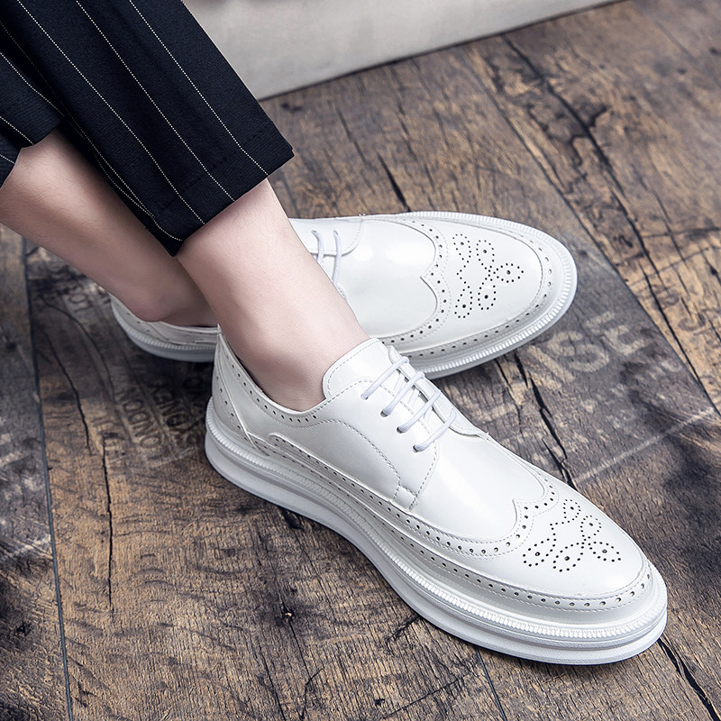 夏季厚底增高休闲皮鞋男布洛克雕花男鞋英伦漆皮白色板鞋潮小白鞋