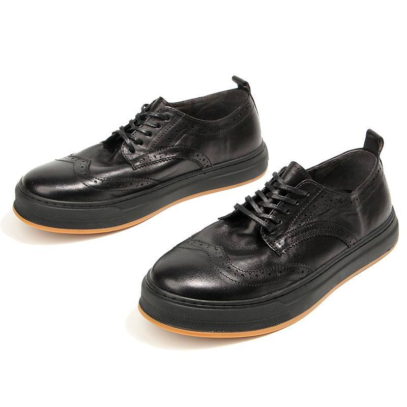 TOM WILSI男鞋布洛克英伦风真皮板鞋增高厚底商务通勤休闲鞋男秋